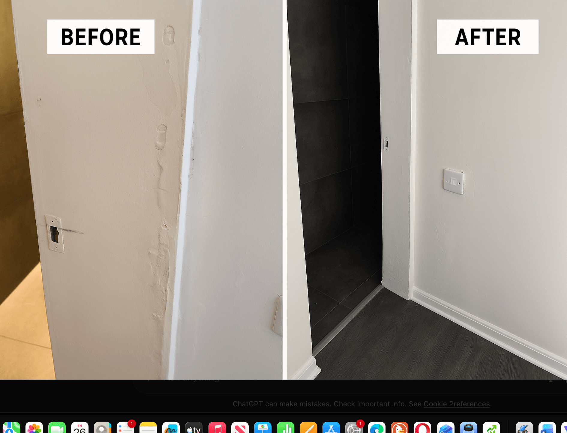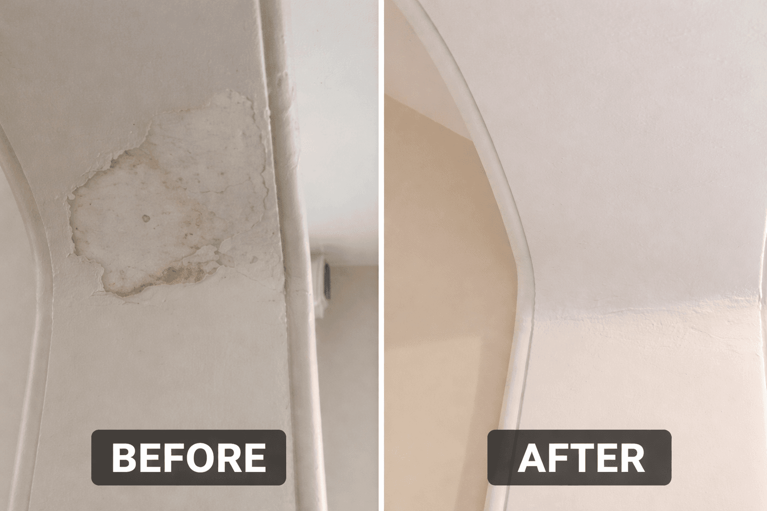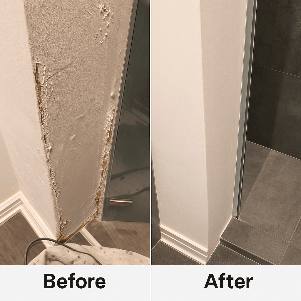 This section showcases professional wall and ceiling repairs, plaster restoration, and comprehensive bathroom touch-ups completed across London properties. My work specializes in restoring surfaces to their original condition, including repairing water-damaged plaster, re-skimming affected areas, and restoring damaged corners or woodwork.